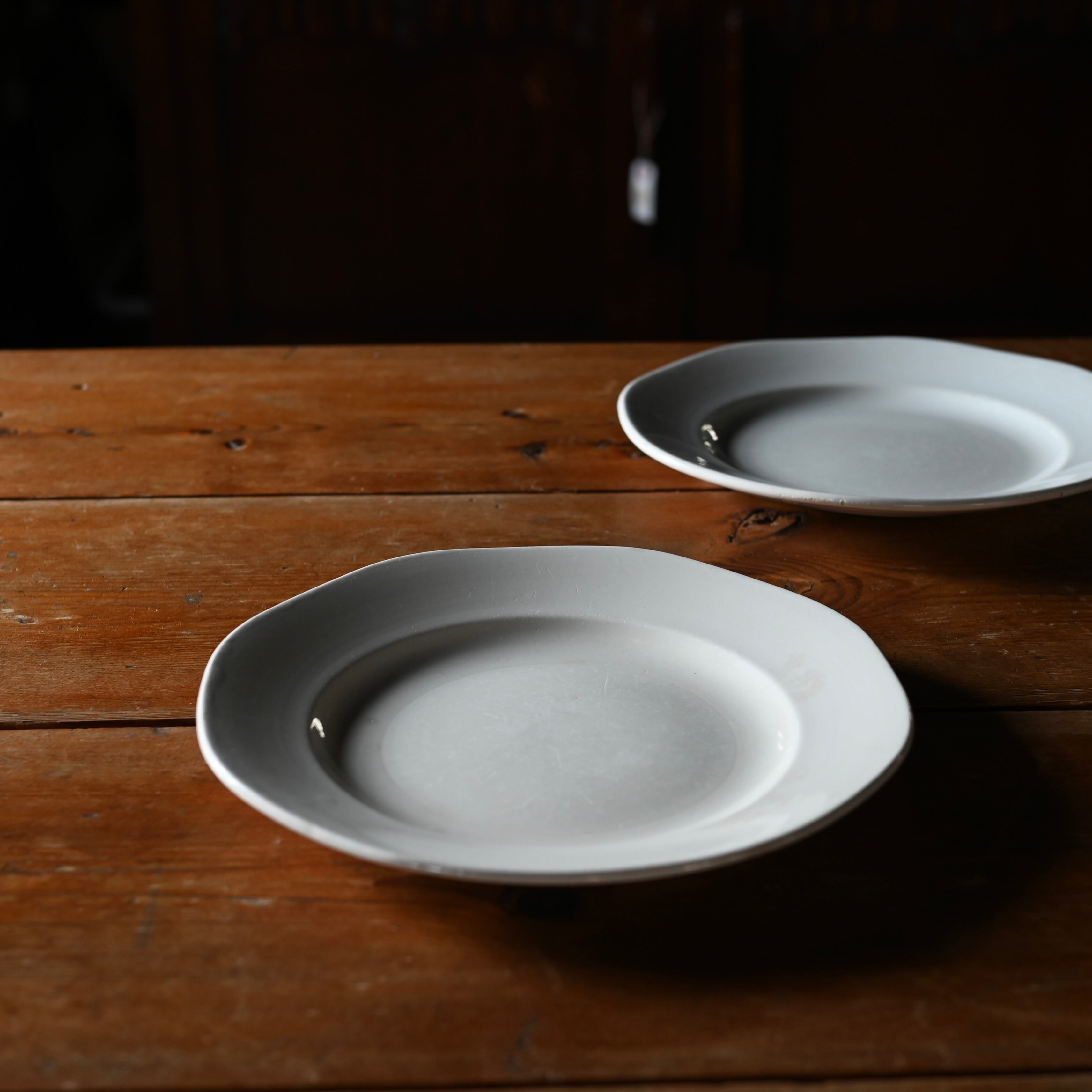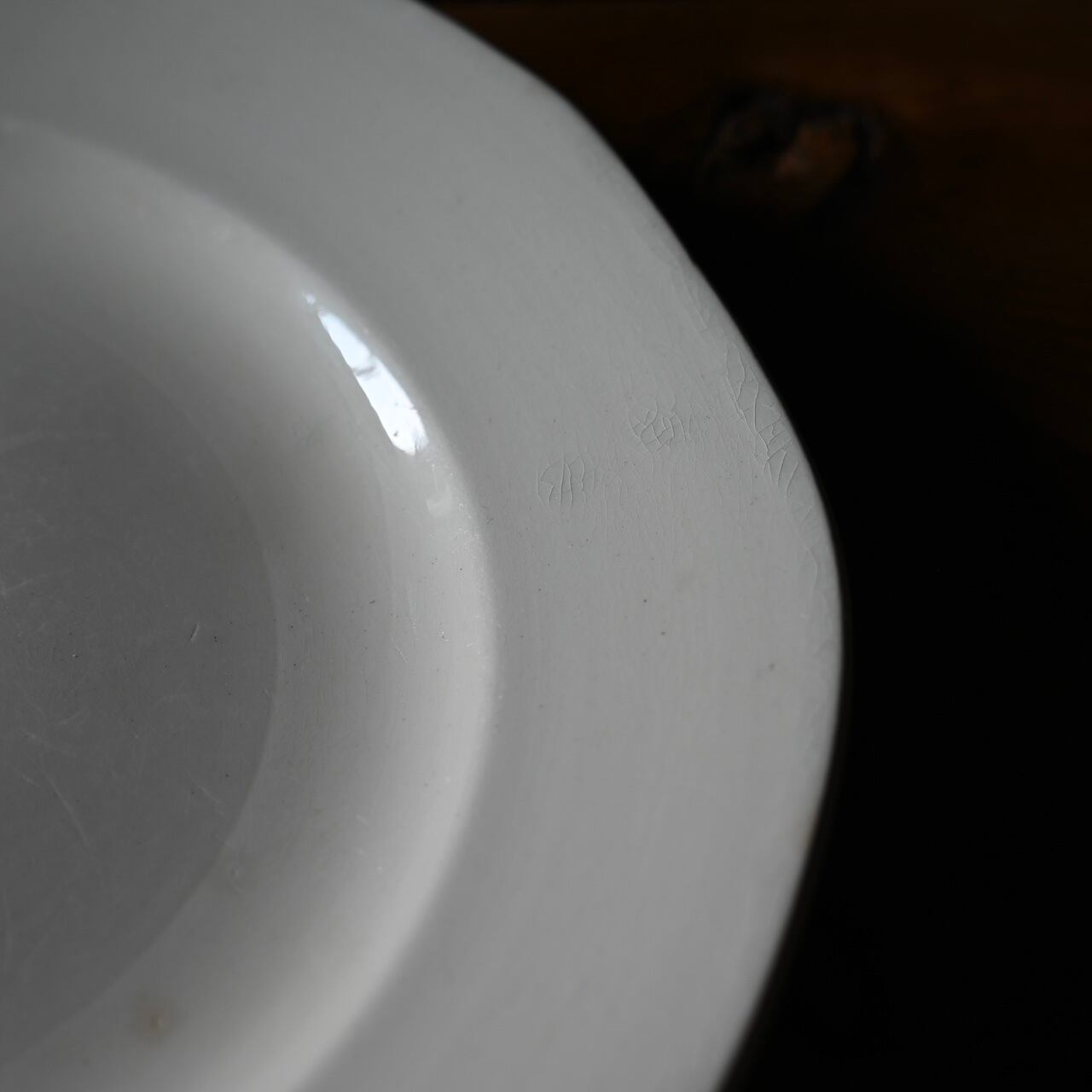 当店で取り扱いをしているフランスの食器は80年以上経過しているものが殆どです。古いものになりますので、貫入(釉薬の細かいひび割れ)やカトラリーによる傷、シミや汚れ、小さな欠けなどがあるものもございます。なるべく細かく写真を撮っておりますが、撮りきれない部分や水を含んで現れる貫入などもありますので、神経質な方や新品のようなクオリティーを求めるお客様には不向きな商品になっております。
