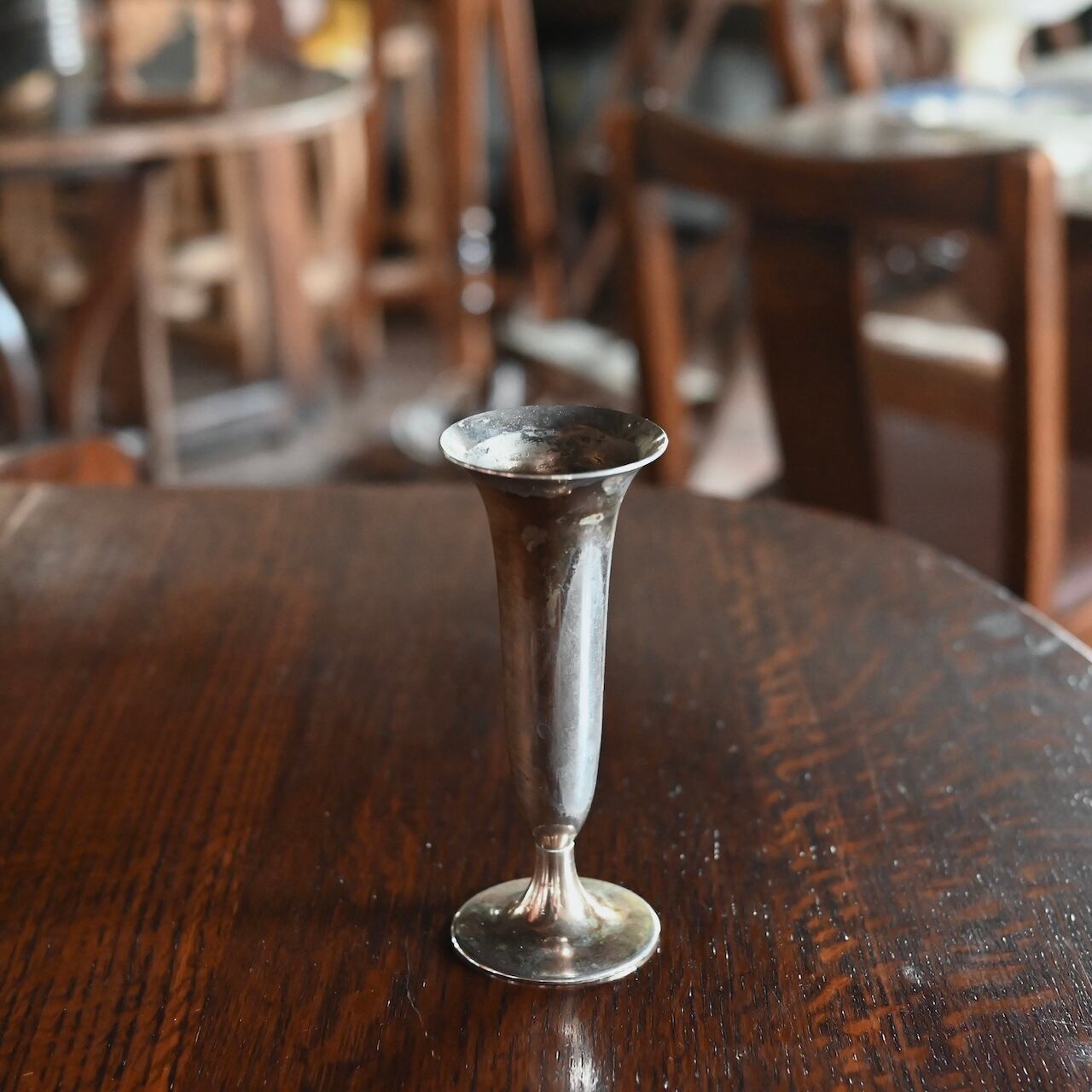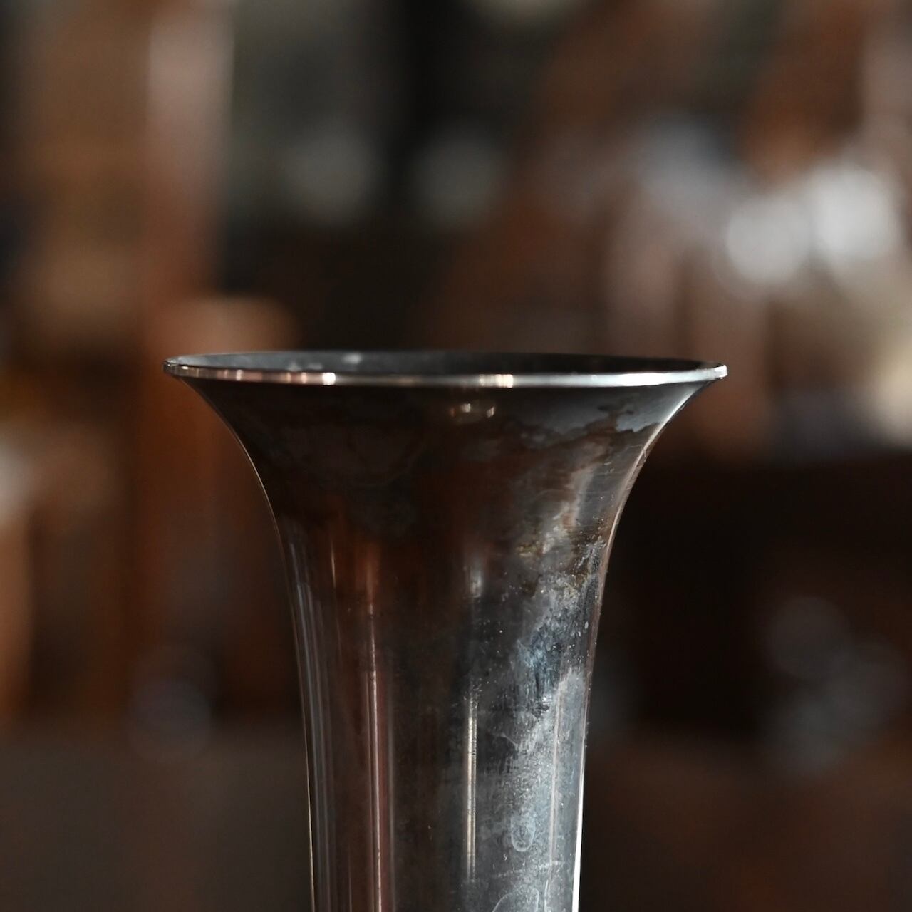 すっきりとしたシンプルなデザインで経年変化により、凹みや錆、くすみが多数あり、アンティークの魅力が詰まったフラワーベースです。