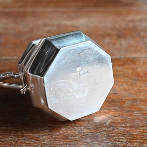 八角形のベースに丸みのあるデザインと持ち手が付いた、可愛らしいシュガーポットです。